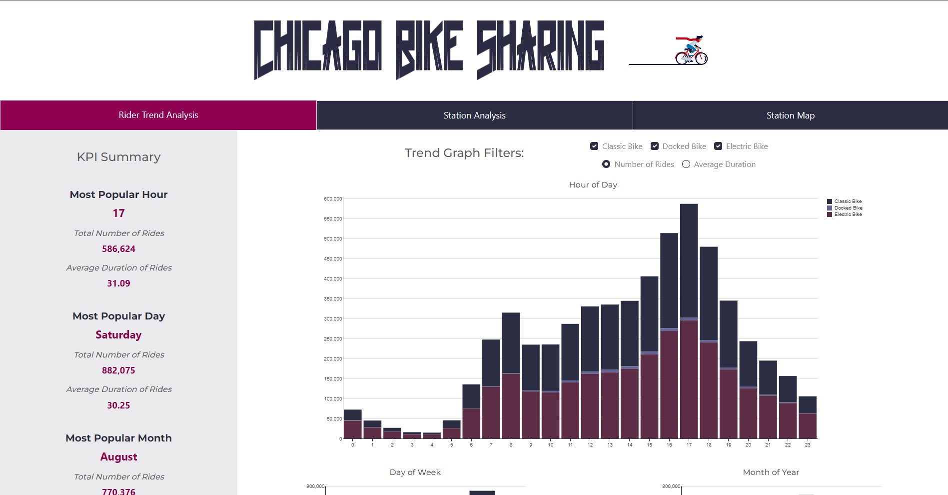 The following project is a dashboard created using Python Dash, and deployed on Heroku. The goal is to help visualize the ride data to help business stakeholders answer key decisions including: