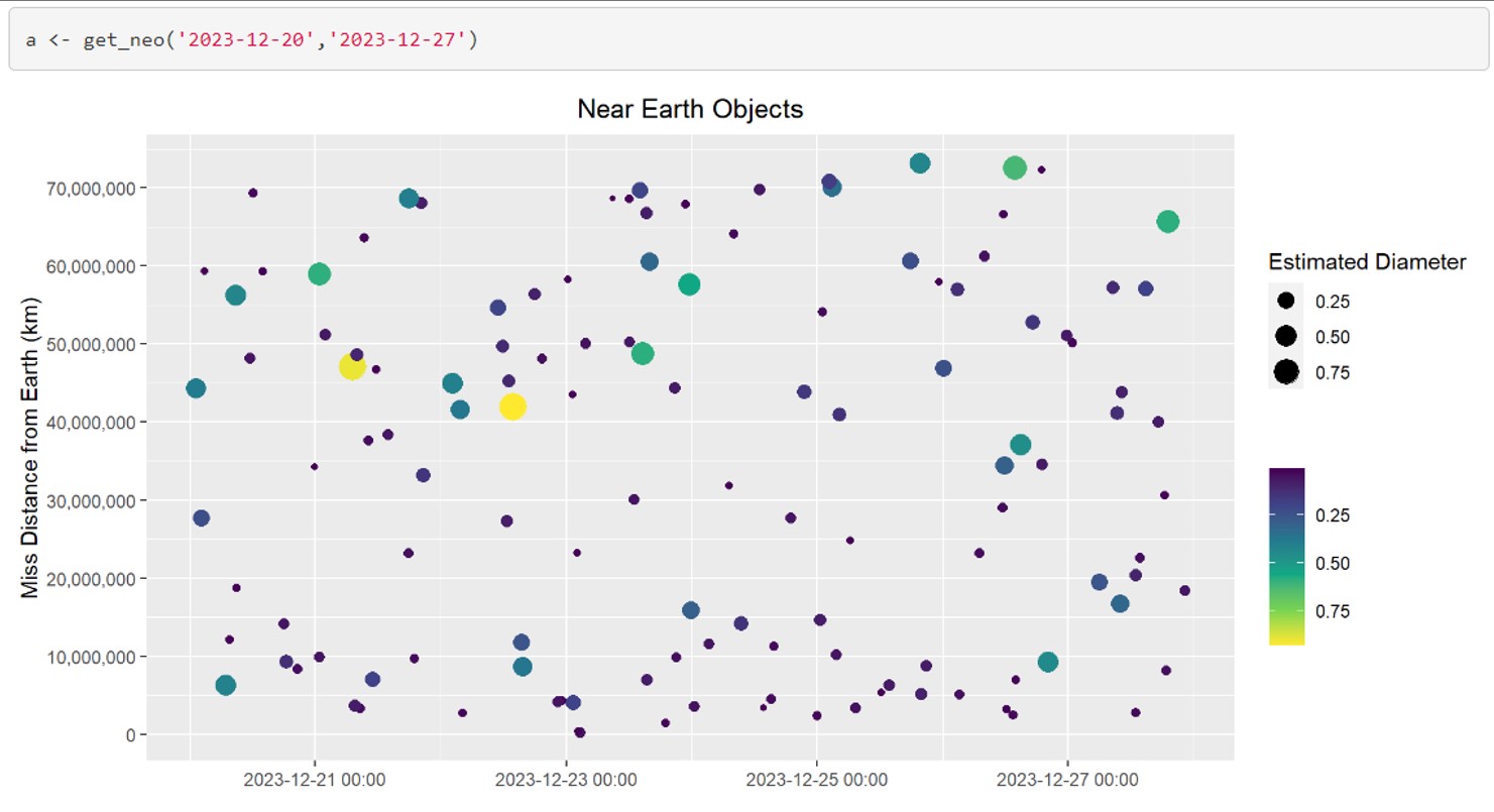 This function will let the user search for NEO’s based on start/end date and give asteroid specific information.